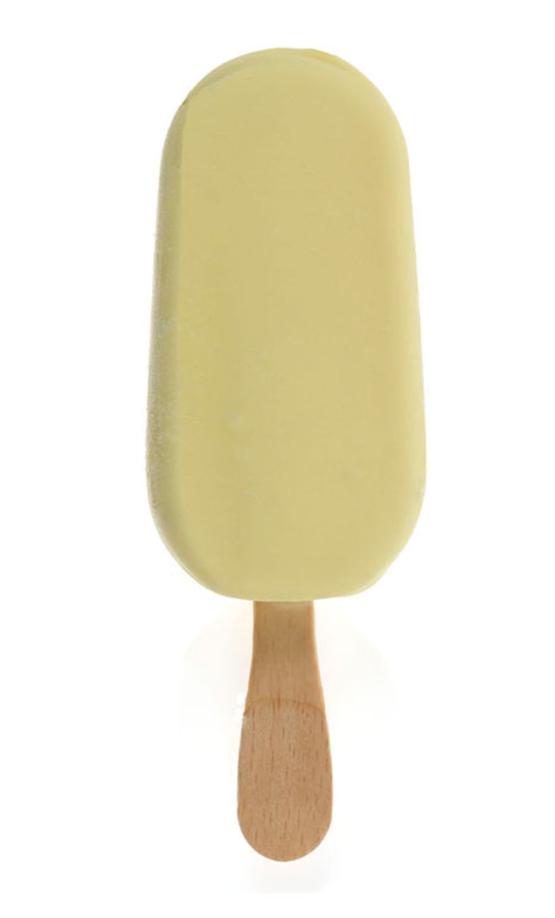 Dairy ice cream coated with white chocolate glaze. Gluten Free.