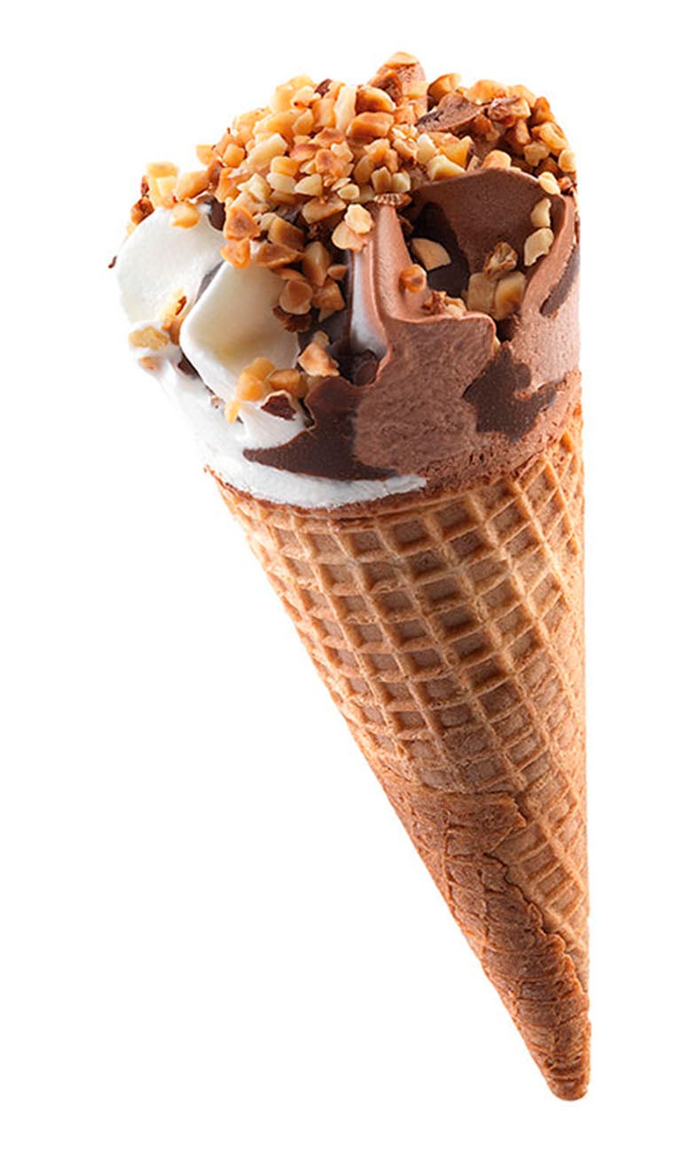 Dairy and chocolate ice cream with crushed hazelnuts, meringue and chocolate.