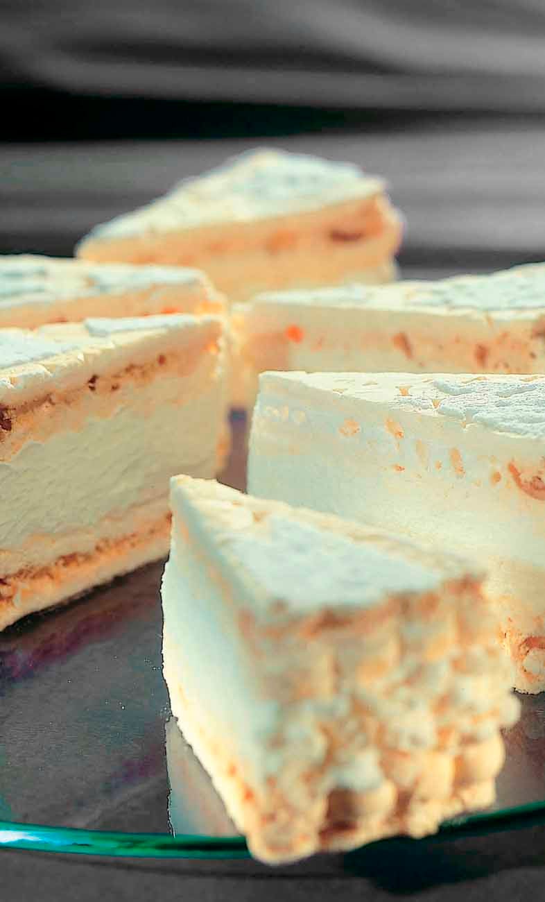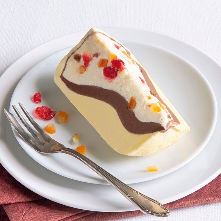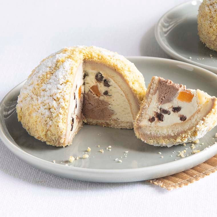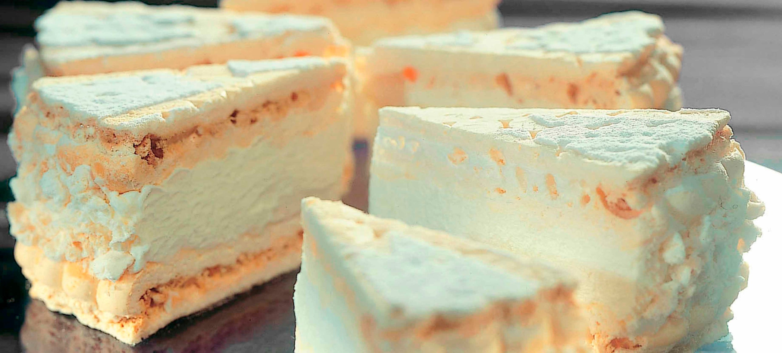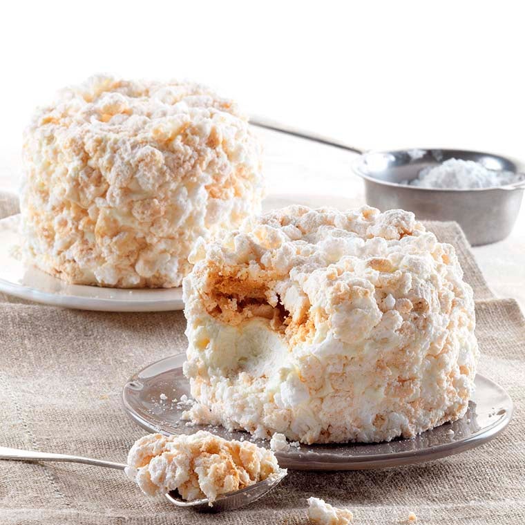 Meringue filled with vanilla flavoured semifreddo. Wrapped separately.
