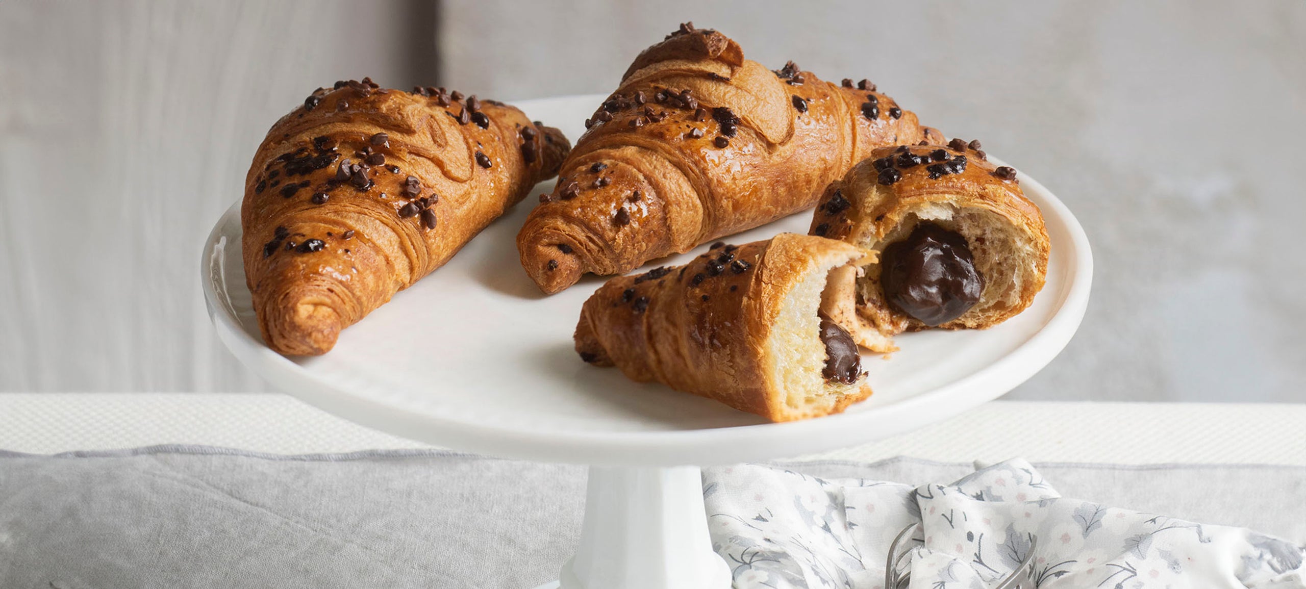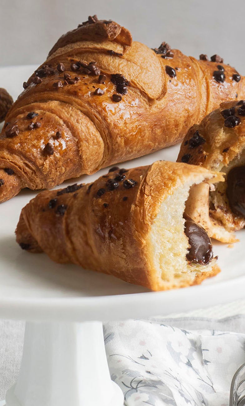 Soft dough with natural yeast. Filled with chocolate and nuts cream selected by Bindi pastry chef. Decorated with chocolate nuggets.
