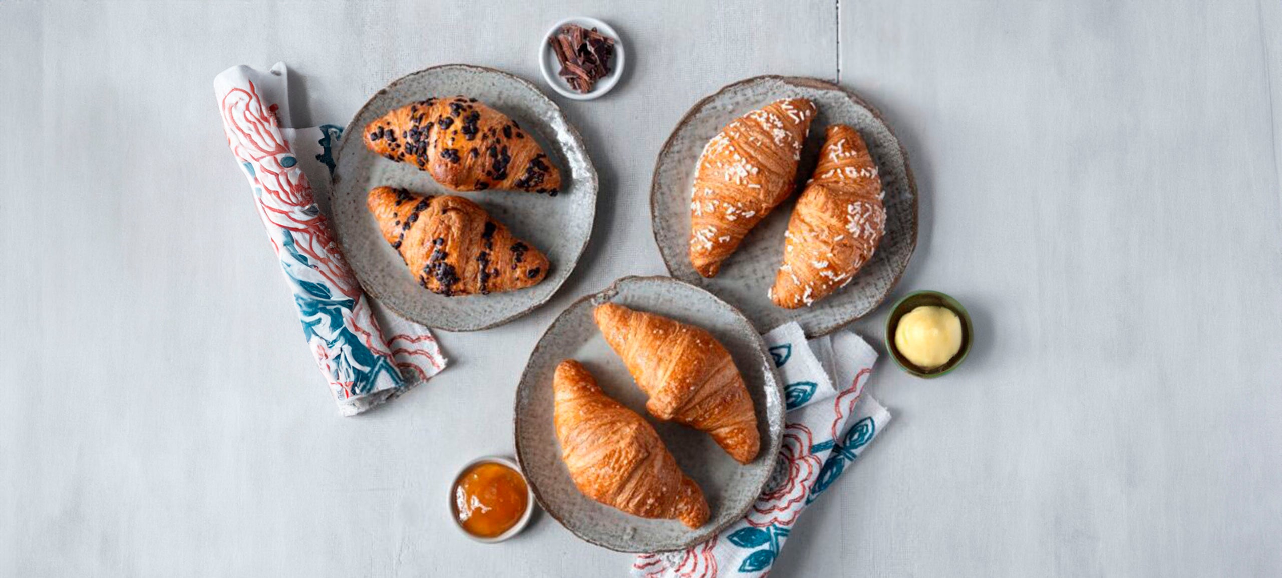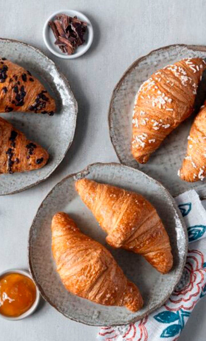 A trio of delectable mini croissants filled with cream, chocolate and apricot.