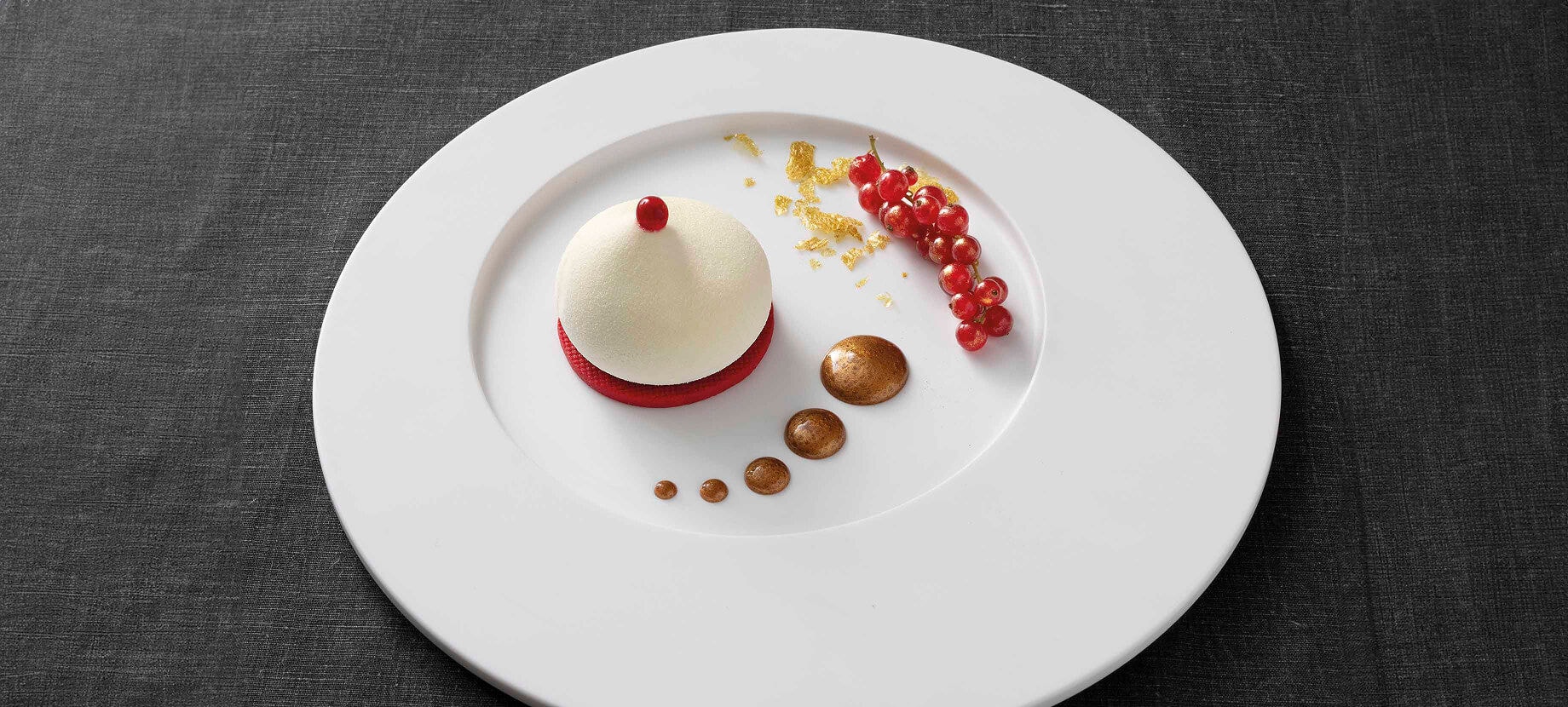 Questa composizione viene adagiata su una base fragrante di pasta frolla red velvet, creando un incontro perfetto di consistenze e sapori che sorprendono il palato ad ogni assaggio. Il delicato velo di cioccolato bianco che avvolge il dessert aggiunge un tocco di eleganza visiva, impreziosendo ulteriormente questo dolce raffinato.