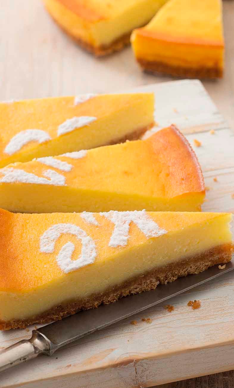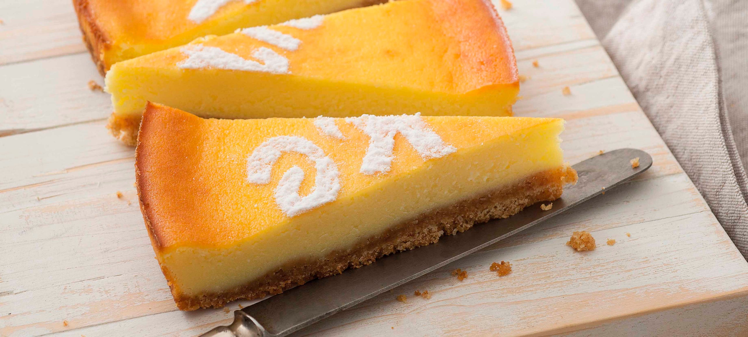 Torta di ricotta e formaggio cremoso su base di biscotto