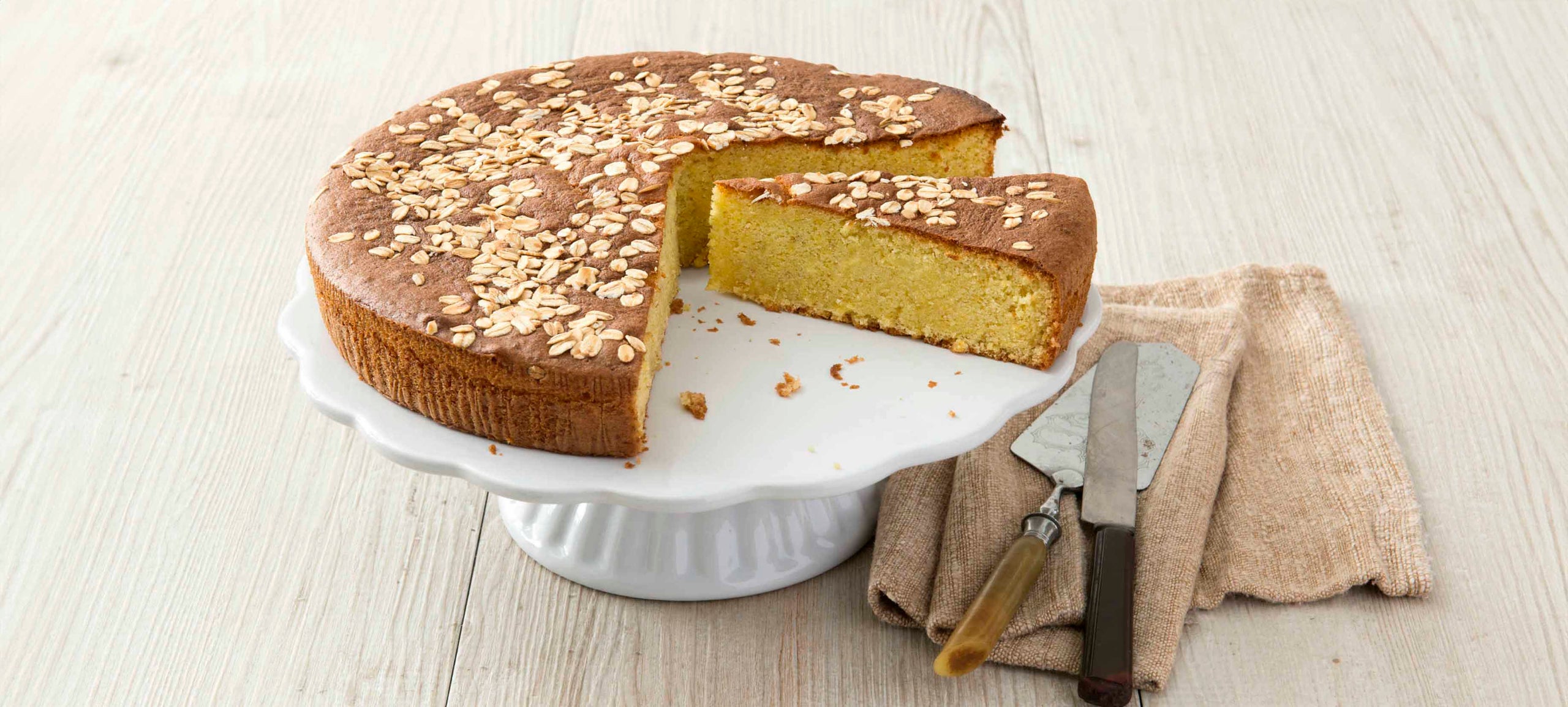 Soffice impasto con albicocca e germe di grano, decorato con fiocchi di avena.