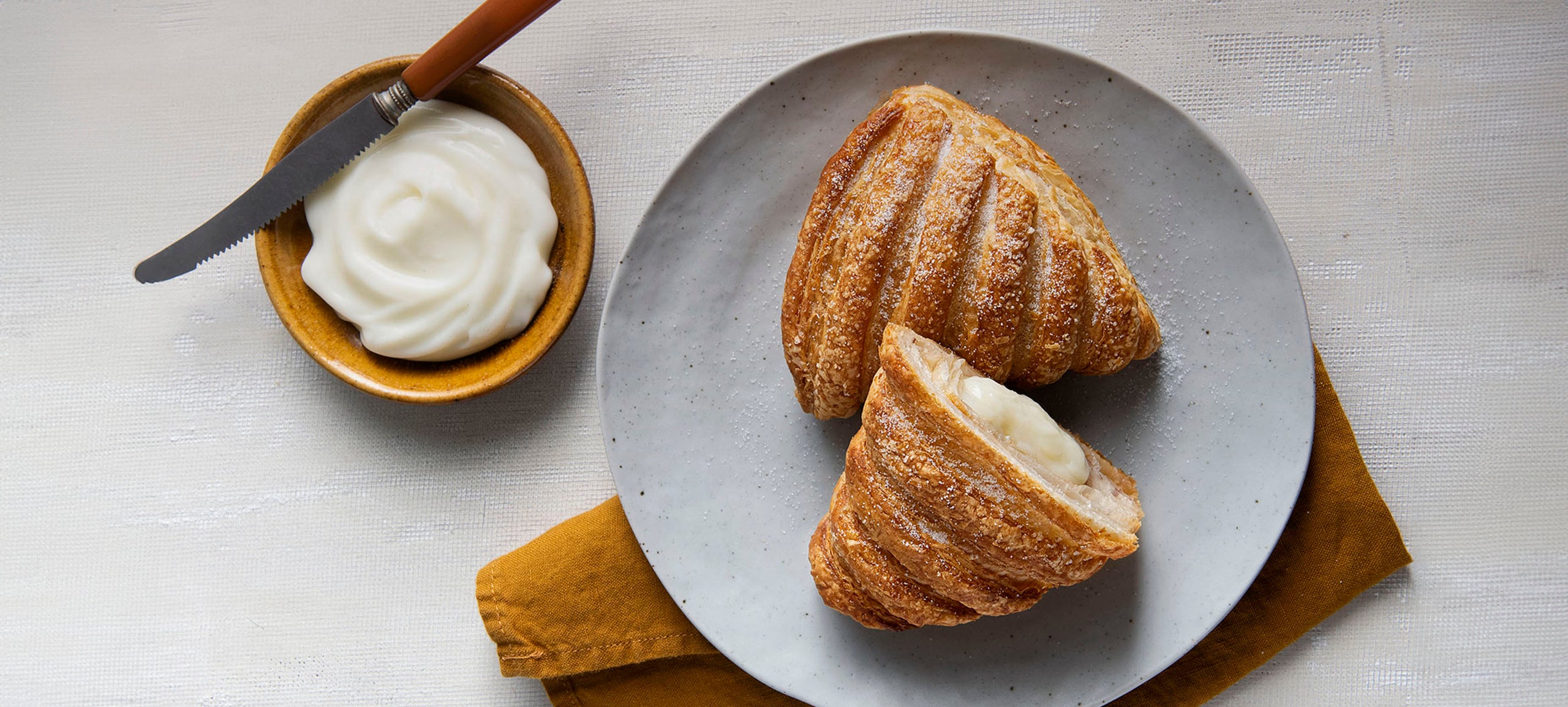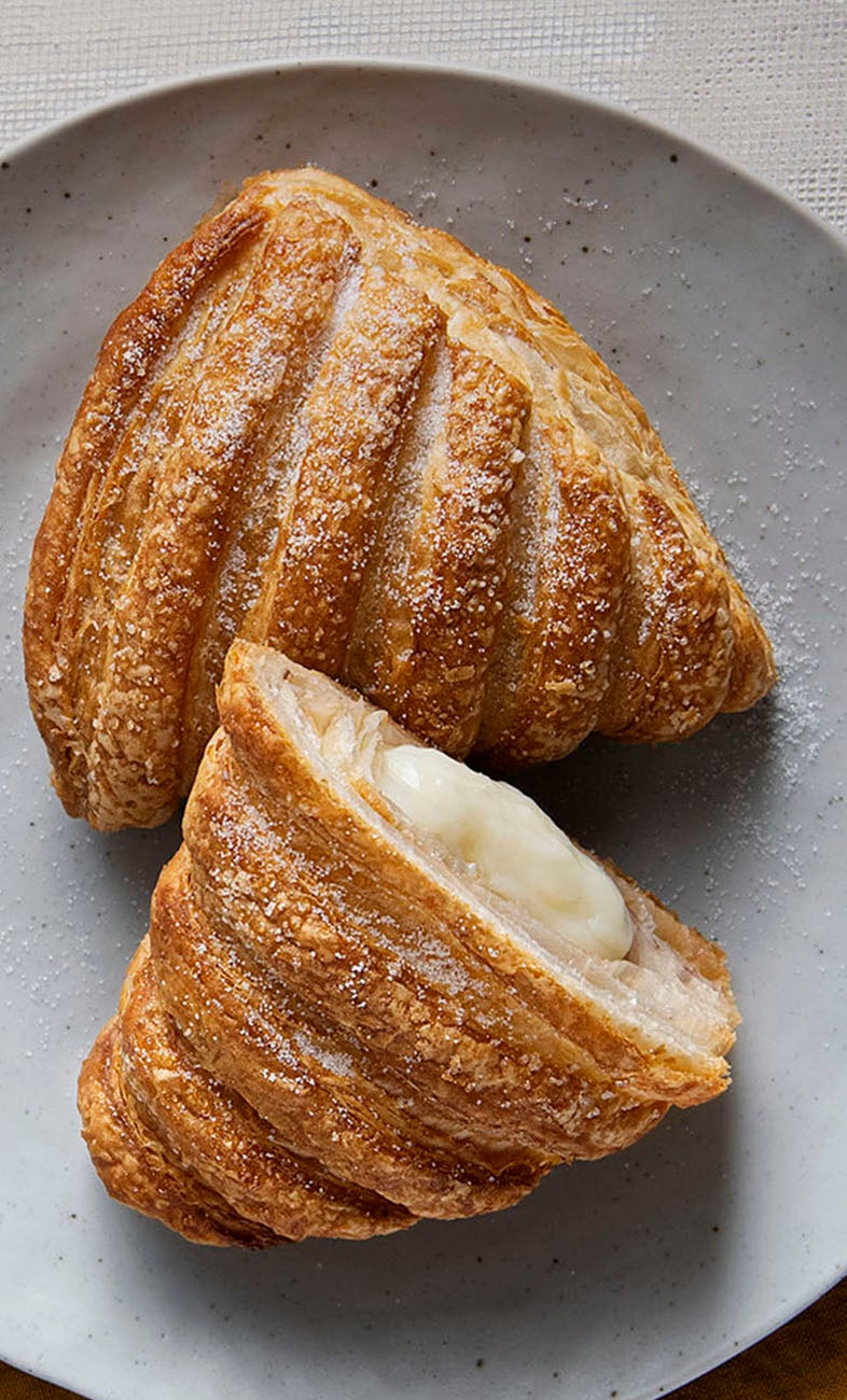 Sfoglia farcita con una crema di panna e latte creata dai pasticceri Bindi. Decorato con cristalli di zucchero.
