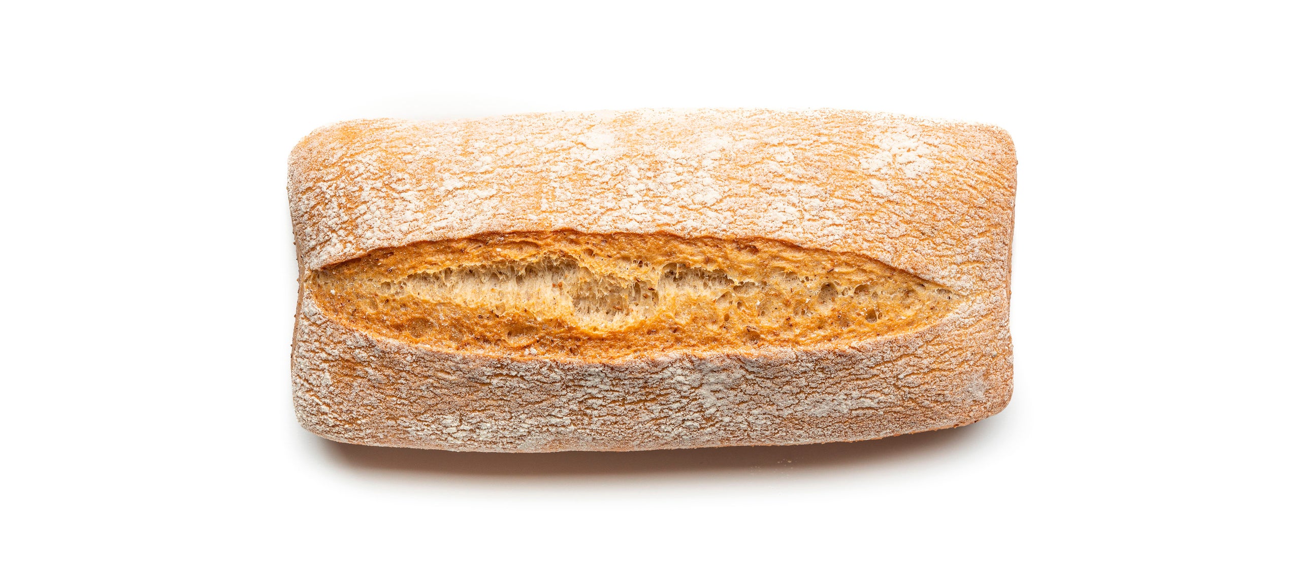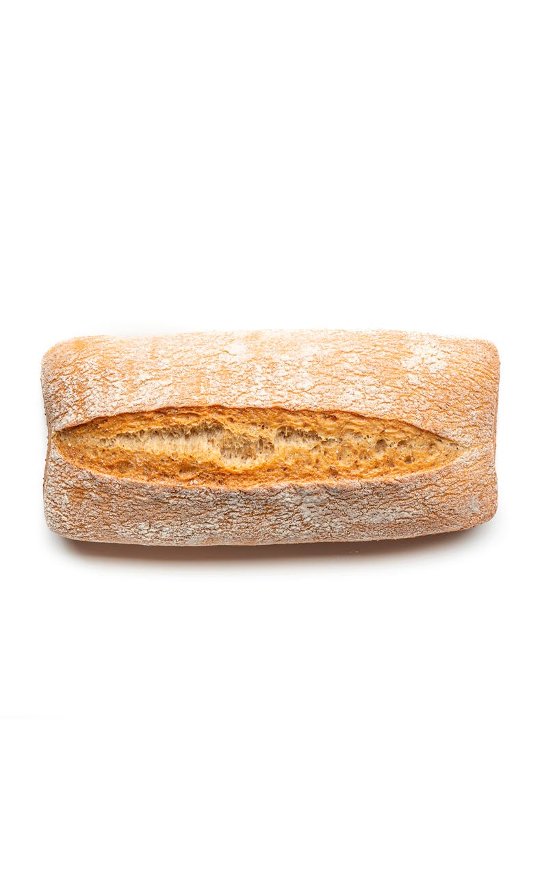 Ciabattina realizzata con un impasto contenente farina di grano tenero tipo 2 macinata a pietra e lievito madre.