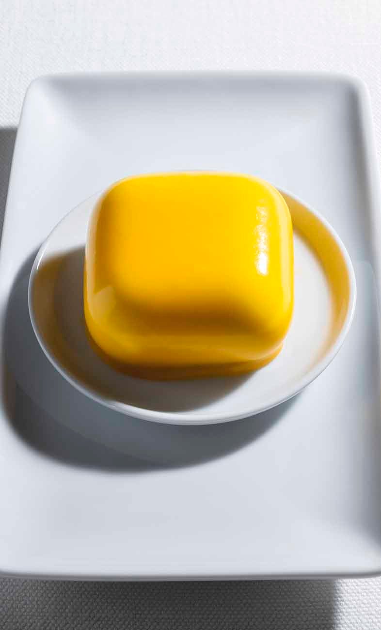 Una base di gustoso crumble al burro accoglie la freschezza della cake al limone con crema pasticcera al limone, una delicata mousse alla vaniglia e panna avvolti da un’elegante glassa dorata.