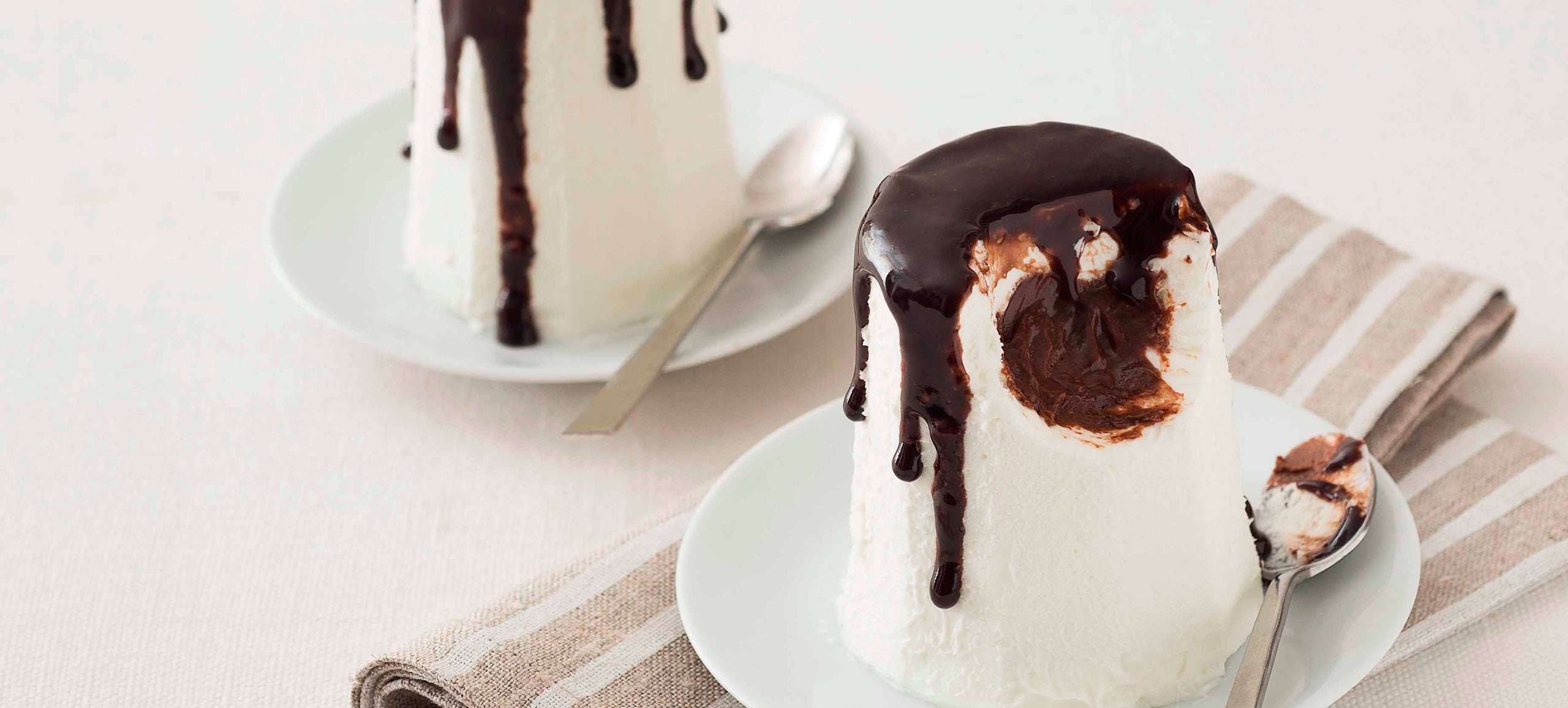 Gelato semifreddo alla menta con cuore di semifreddo al cioccolato, decorato con glassa al cioccolato