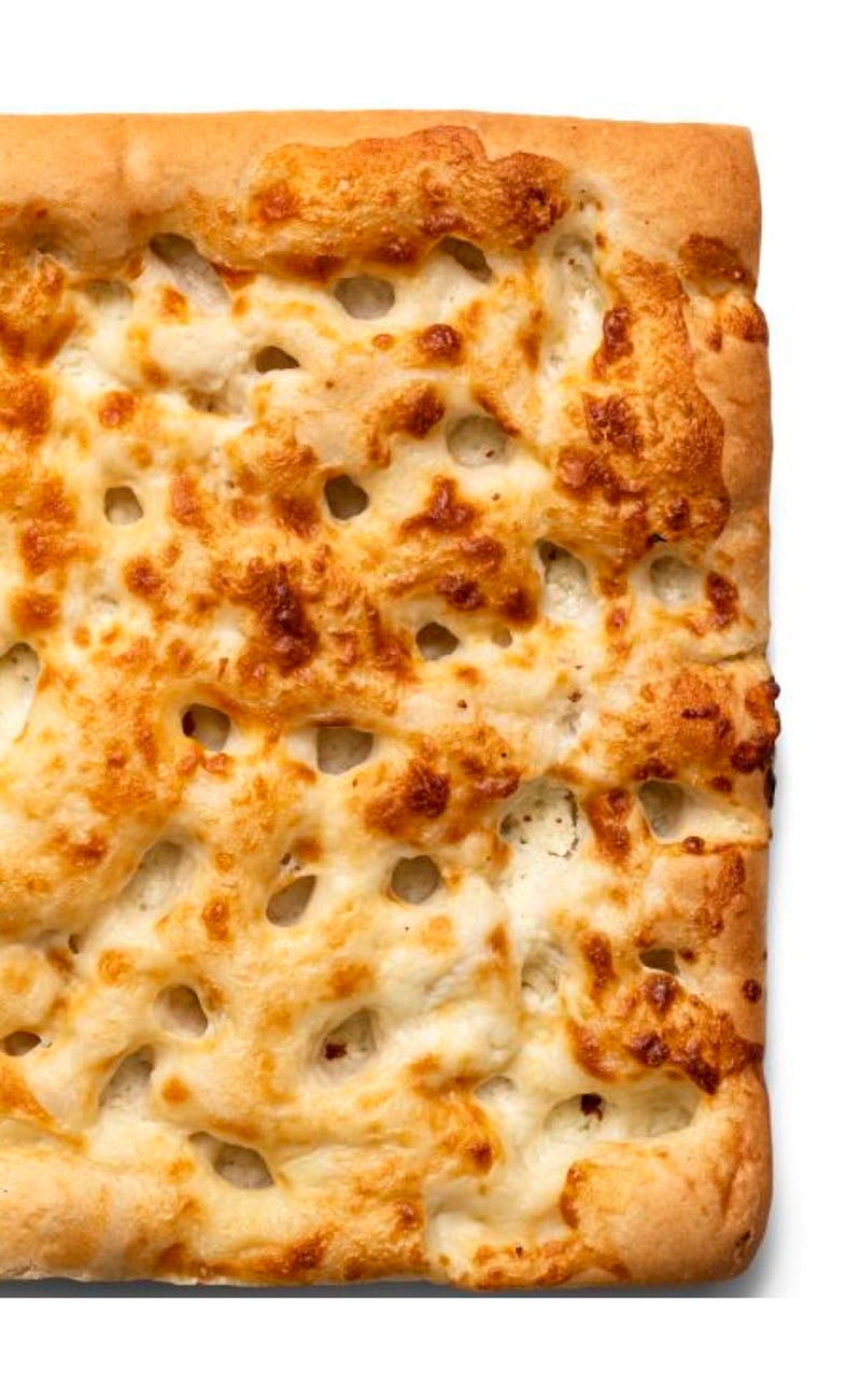 Golosa focaccia a doppia lievitazione, con gustoso formaggio stracchino.