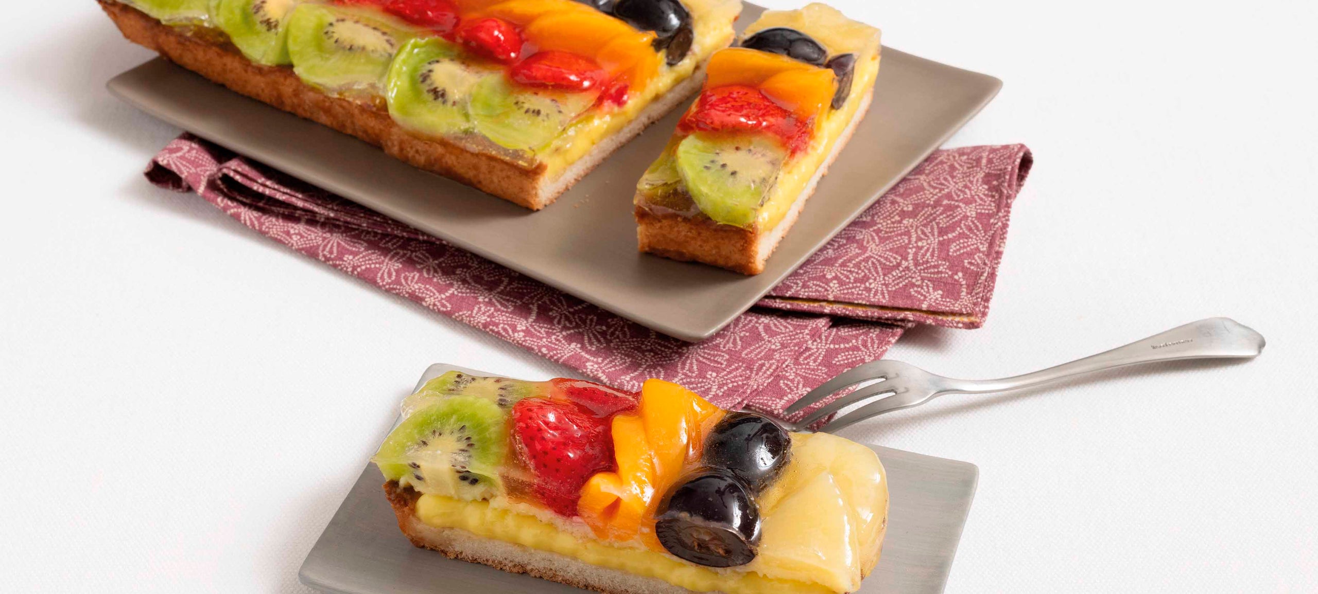 Pasta frolla con crema pasticcera e frutta sciroppata
