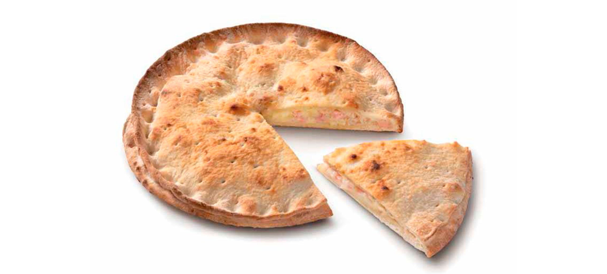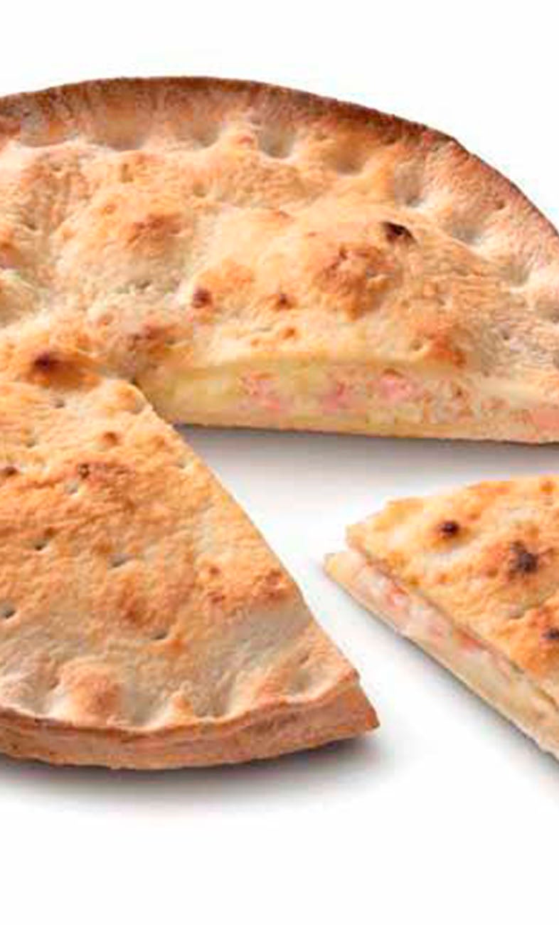 Focaccia farcita con prosciutto cotto e emmental, con Olio Extra Vergine di Oliva.