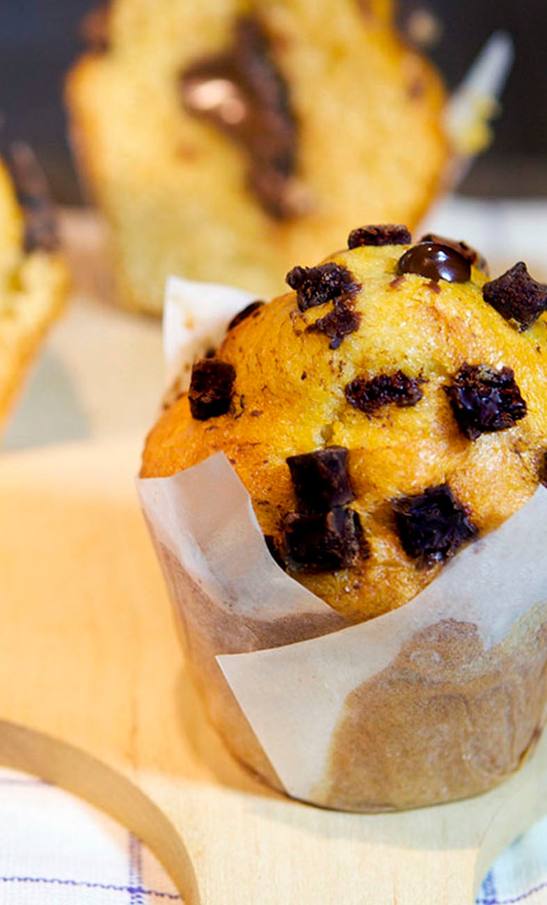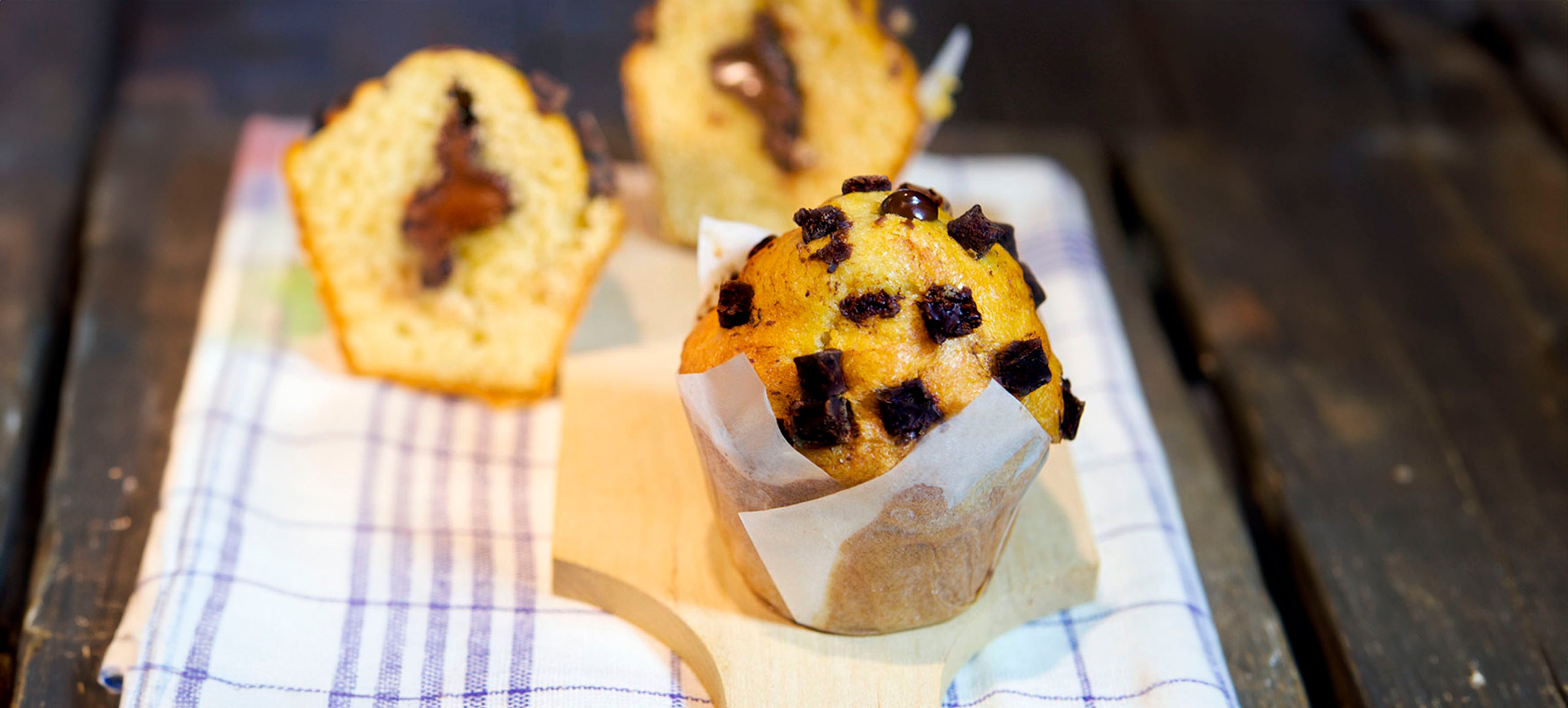 Muffin ripieno alla nocciola e gocce di cioccolato