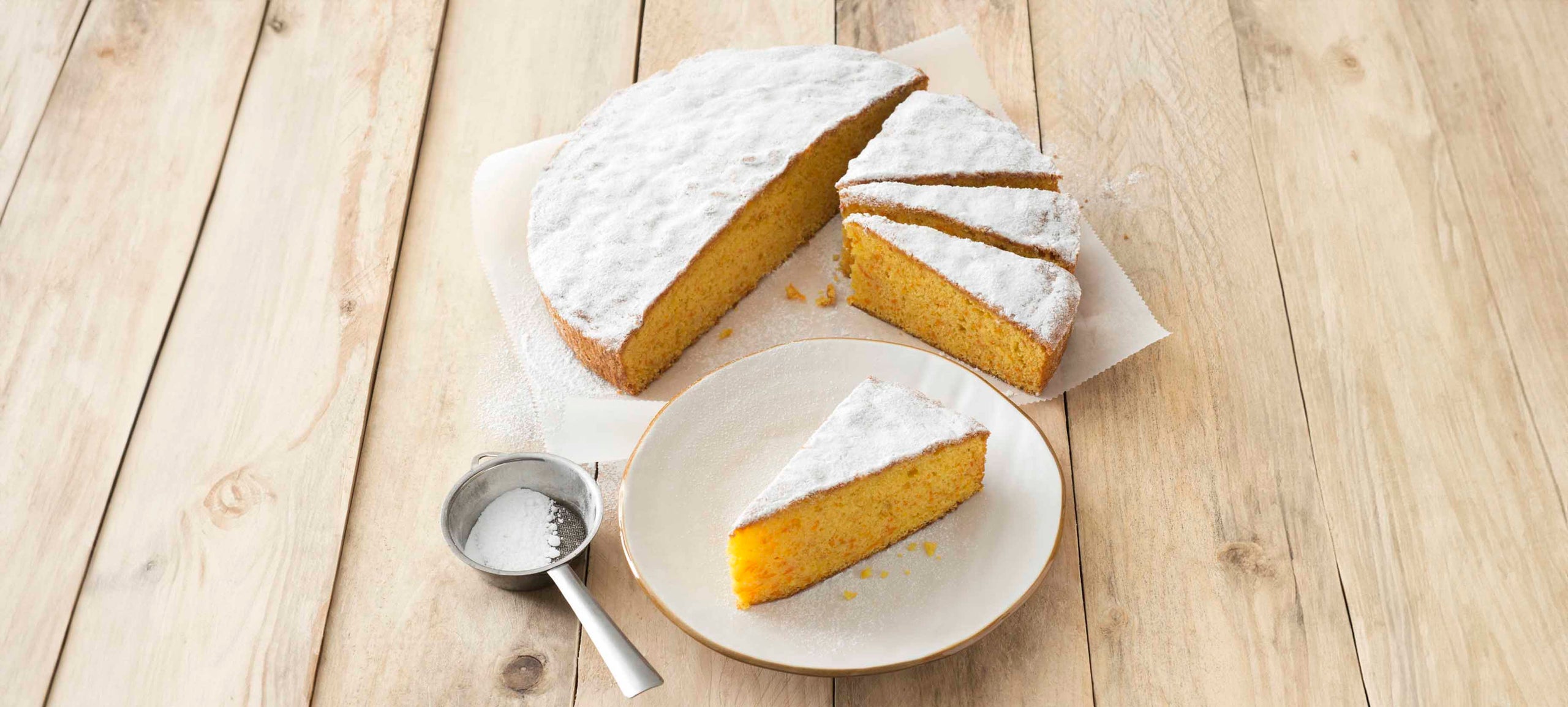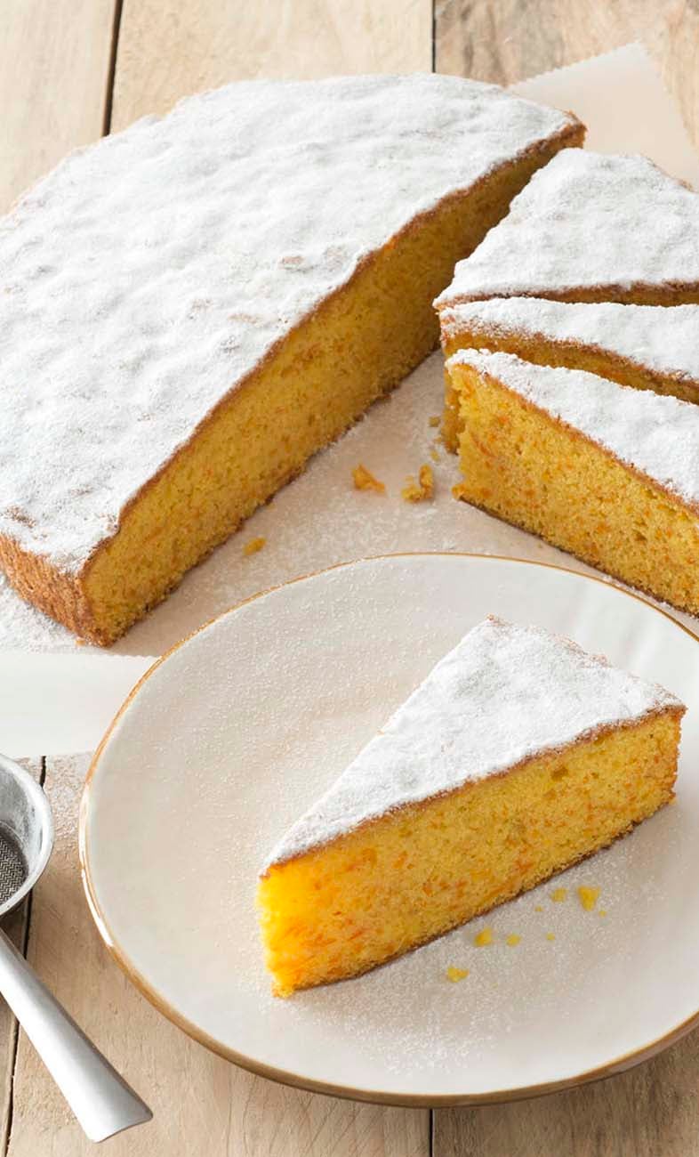 Soffice impasto a base di carote spolverato con zucchero a velo.