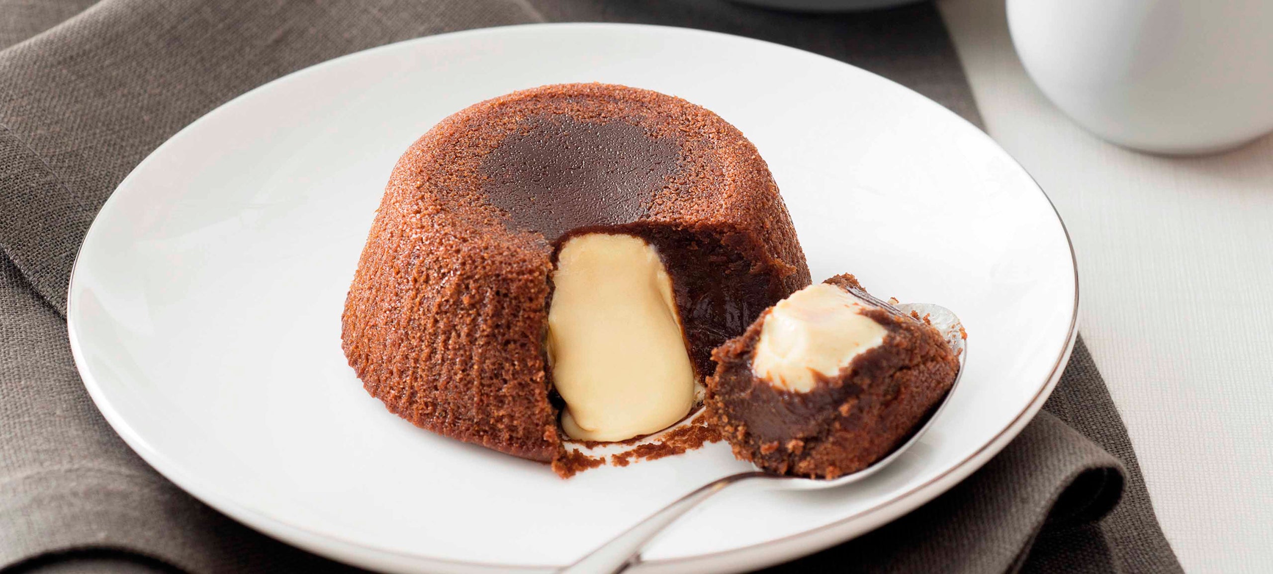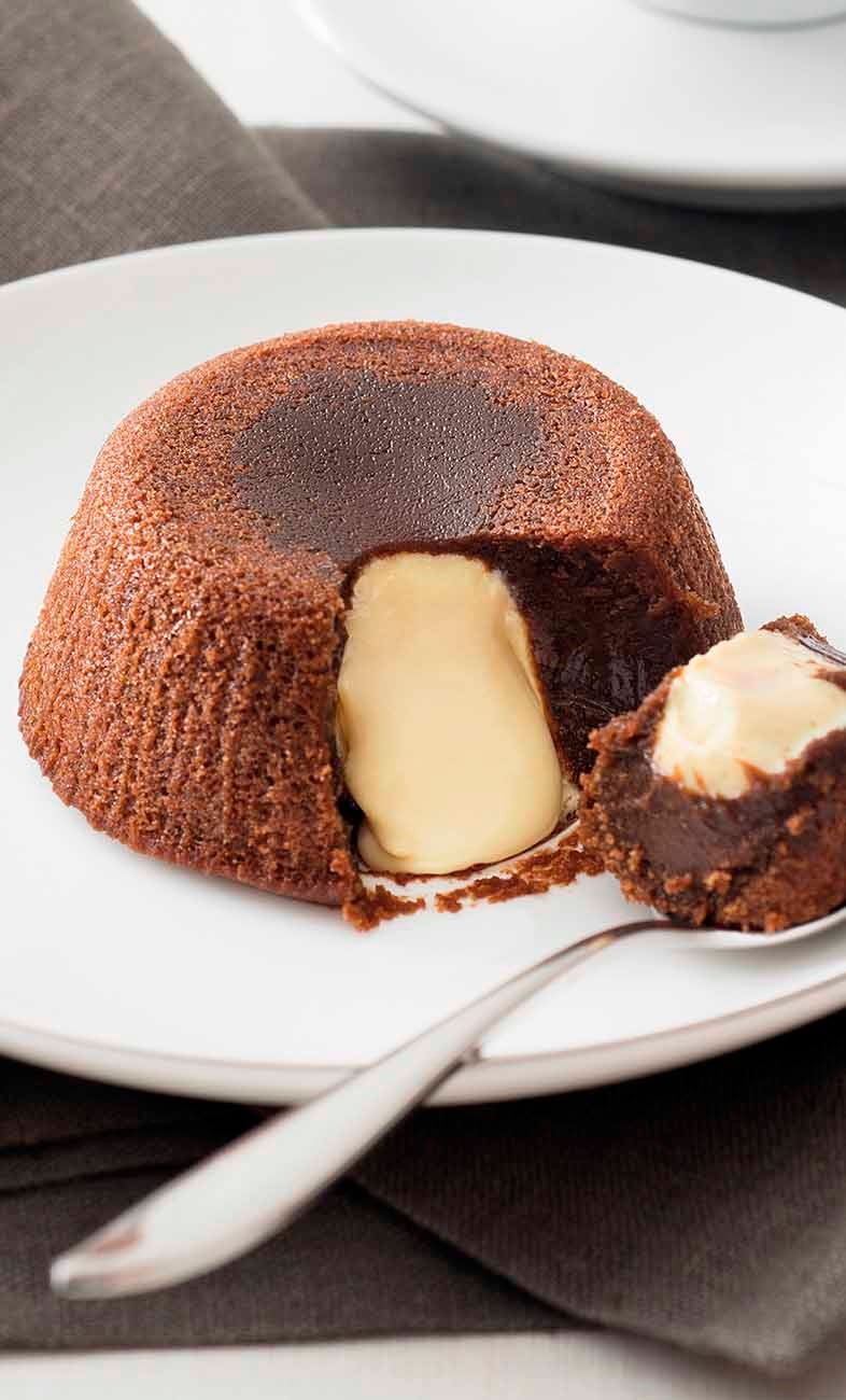 Souffé con cioccolato fondente con cacao monorigine dell’Ecuador ed un cuore di cioccolato bianco liquido.