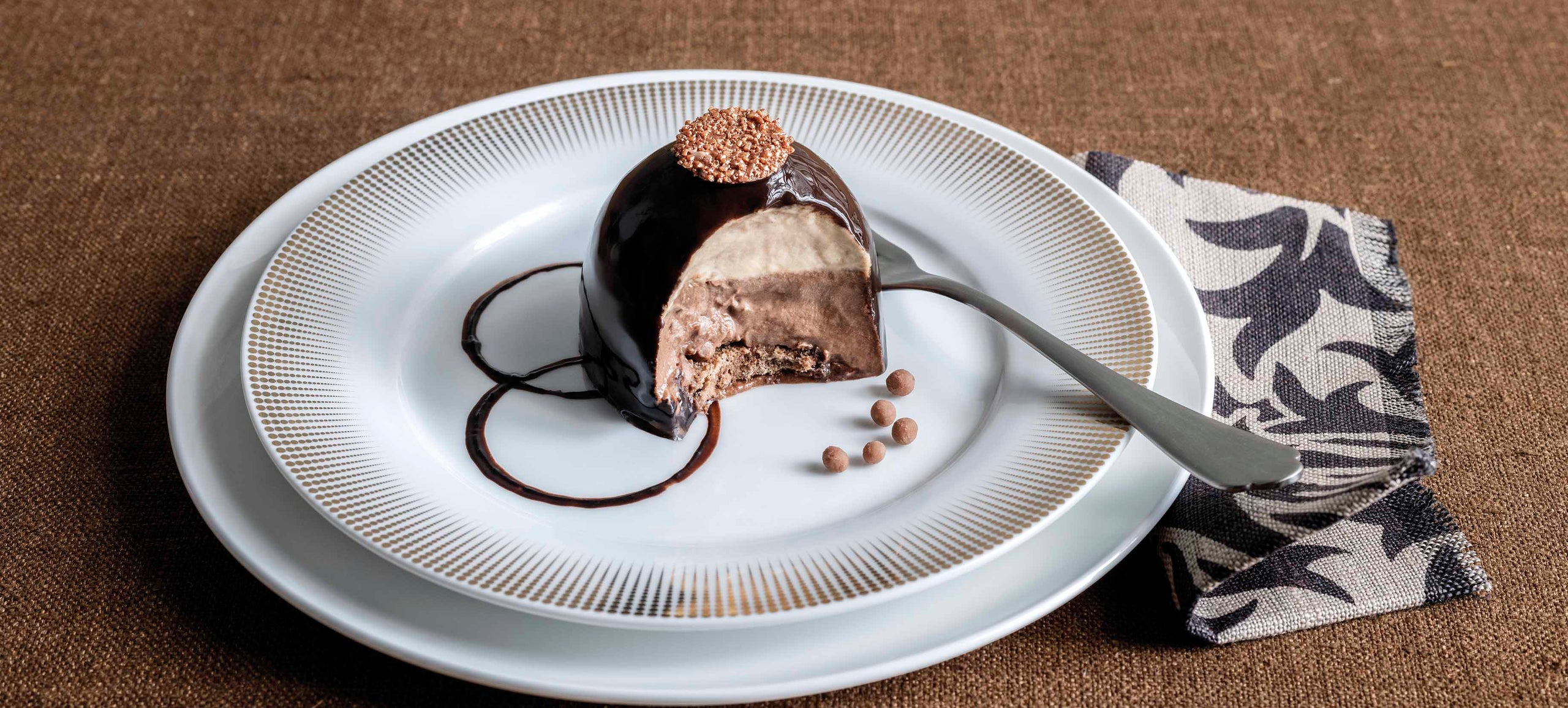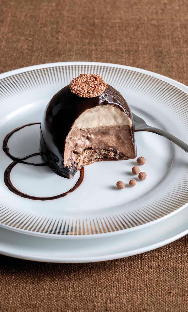 Un gioiello alla nocciola e crema al cioccolato fondente, adagiata su un morbido Pan di Spagna al cacao con una golosa granella croccante di cioccolato al latte. Il tutto racchiuso in una brillante glassa al cacao con un prezioso decoro dorato al cioccolato bianco. Prodotto realizzato con pasta di nocciole ottenuta esclusivamente da "Nocciola Piemonte IGP"