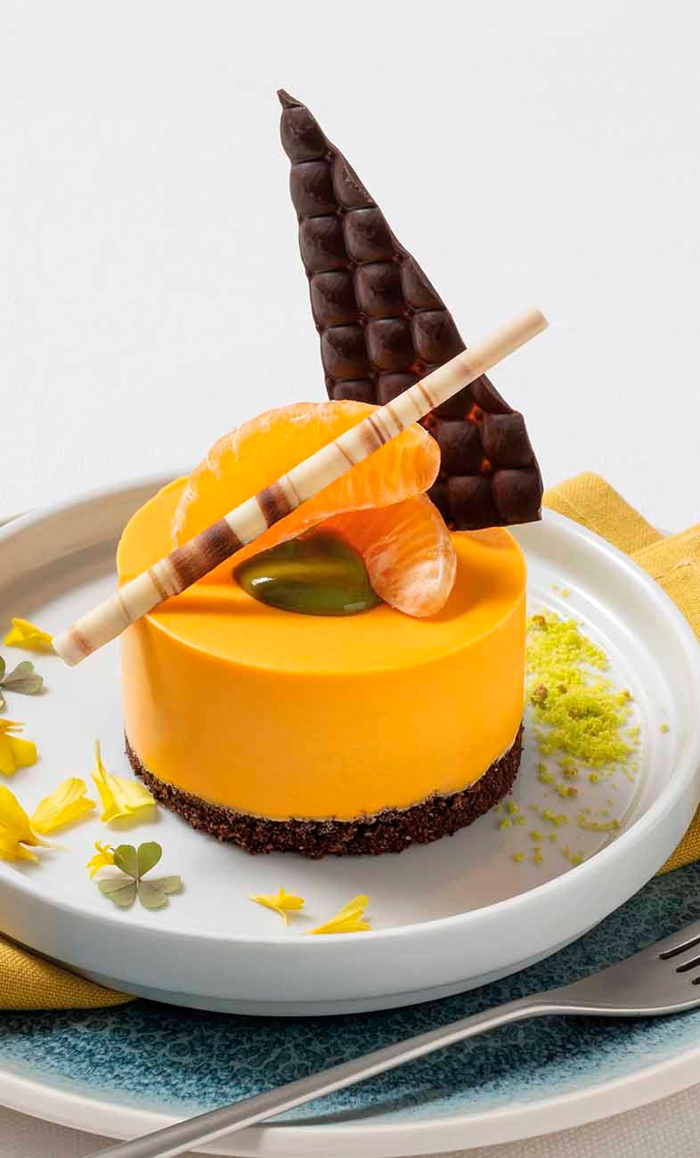 Esclusiva monoporzione semifredda con una ricca e croccante base di biscotto al cioccolato e una deliziosa crema al mandarino tardivo di Ciaculli che darà allo chef l’ispirazione e la creatività nella decorazione e impiattamento.