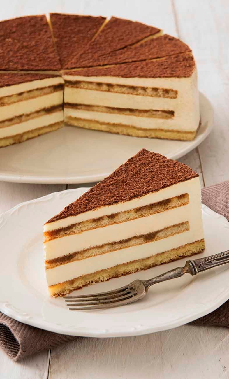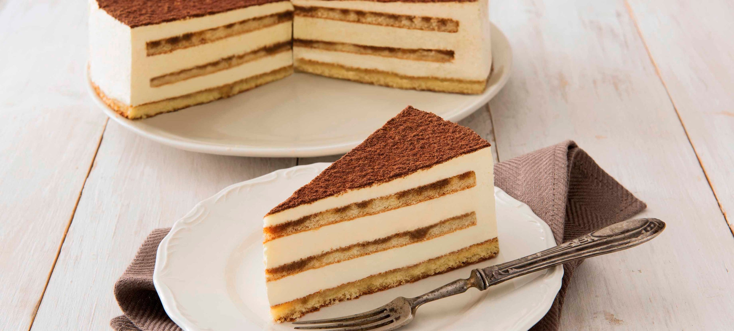 Crema allo zabaione e Pan di Spagna inzuppato al caffè e pretagliata.